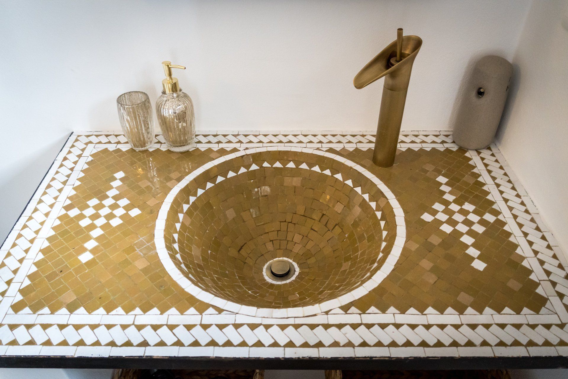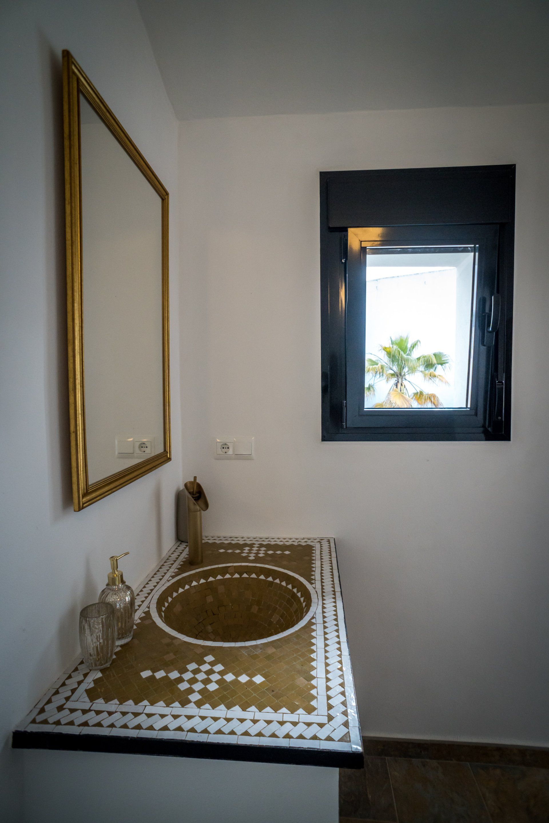 Being our largest suite in the premises, the Terrace Suite merges the inside world with outside. The large roof terrace, equipped with your own beds and furniture, allows you to overlook the swimming pool at the heart of Suites del Mundo while enjoying a breath of fresh air in full privacy. However, the true sparkle of this suite is found in the golden details that will particularly catch your eye in the en-suite bathroom.